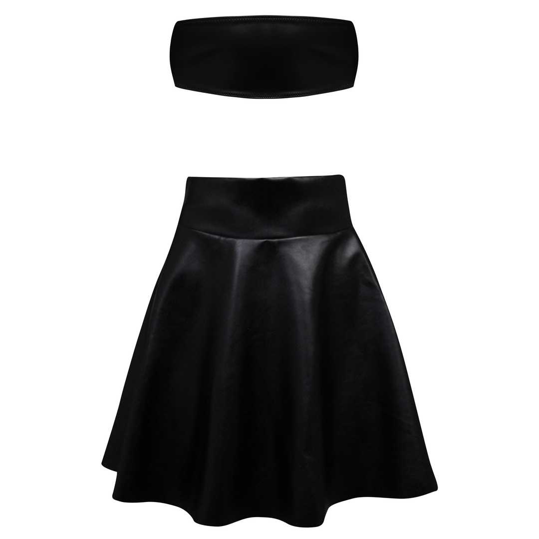 • ست نیم تنه و دامن زنانه ماییلدا مدل چرمی کد 4687-302 رنگ مشکی